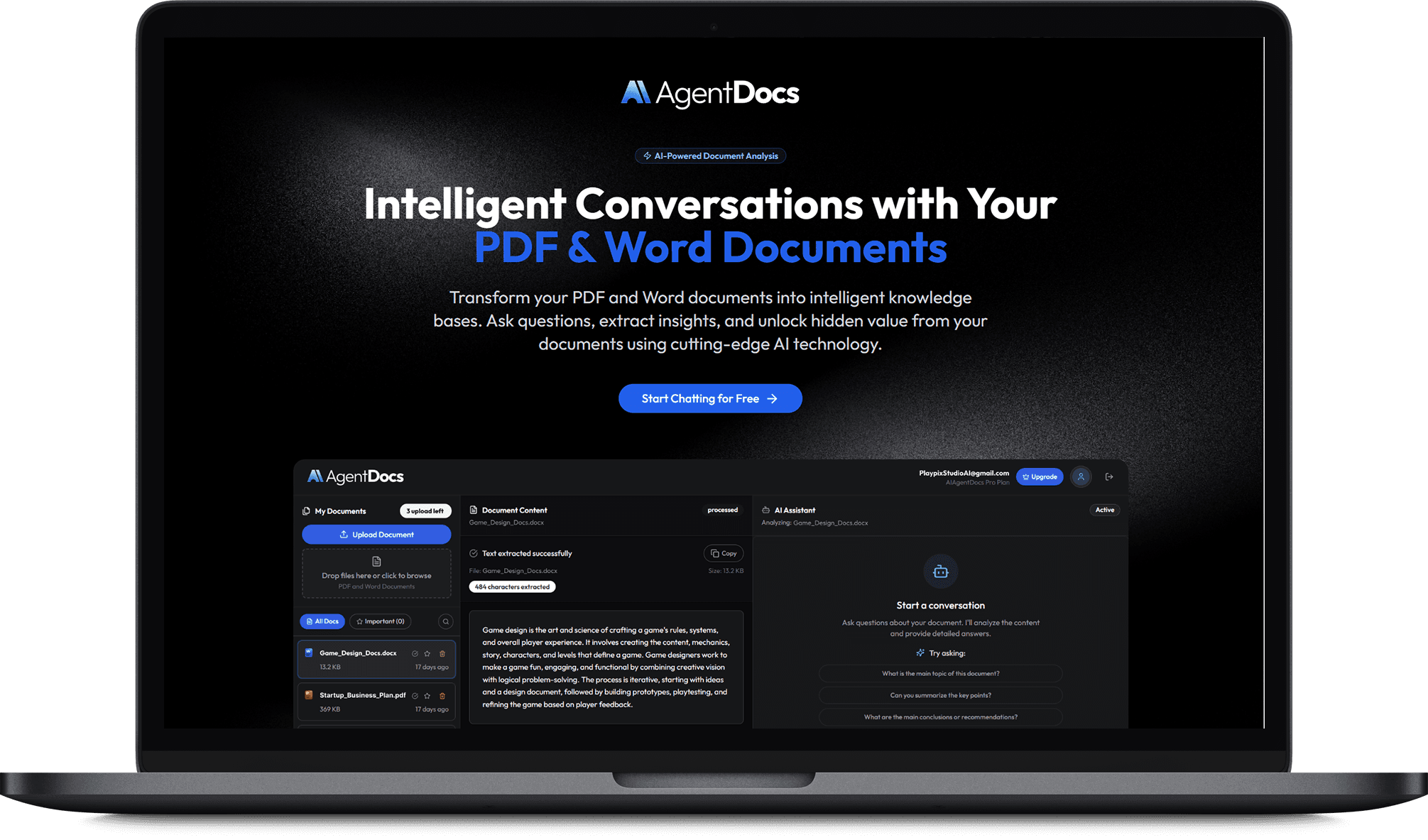 Chat with any PDF, Word, or text file. Ask questions, extract insights, and summarize instantly.